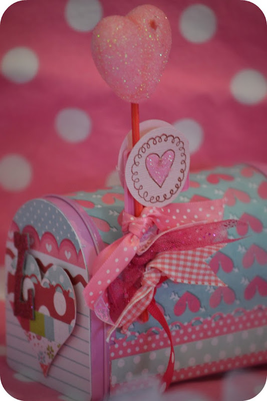This is what my girls will be getting for Valentines tomorrow. I was going to make them something else, but when I was going thur some of my stuff I found some mailboxes. Apparently when I made these about three years ago I bought some serious stock of these mailboxes....LOL! Lets just say that for the next 3-4 years my girls and a few friends might still be getting mailboxes.